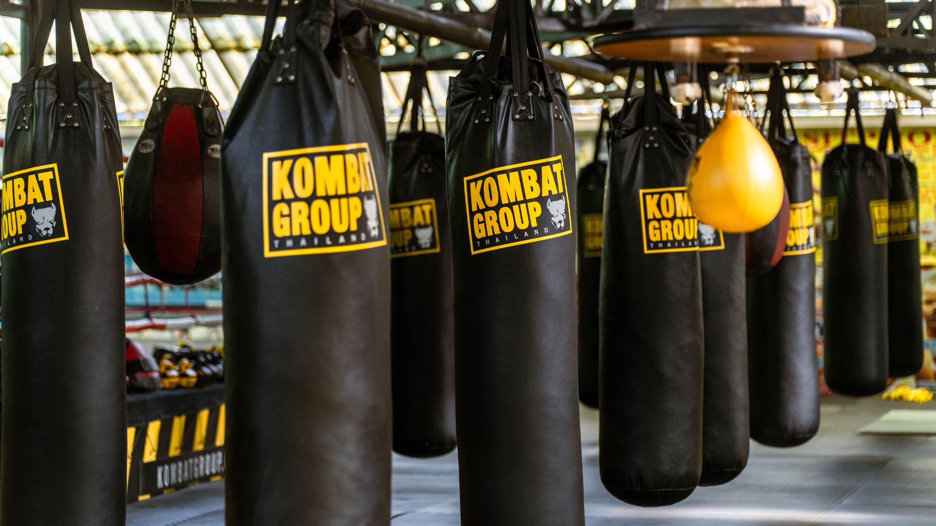 A full bag line-up for Boxing + Muay Thai: heavy bags, uppercut bags, wall bags, speed balls, and double-end balls - in two separate gyms!